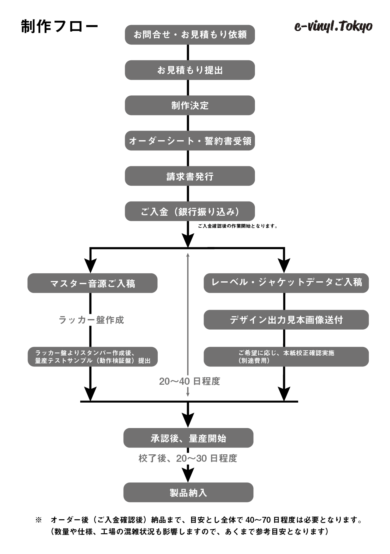 初期費用込み(ラッカー盤・スタンパー作成代)、動作テスト盤1枚まで提出込み